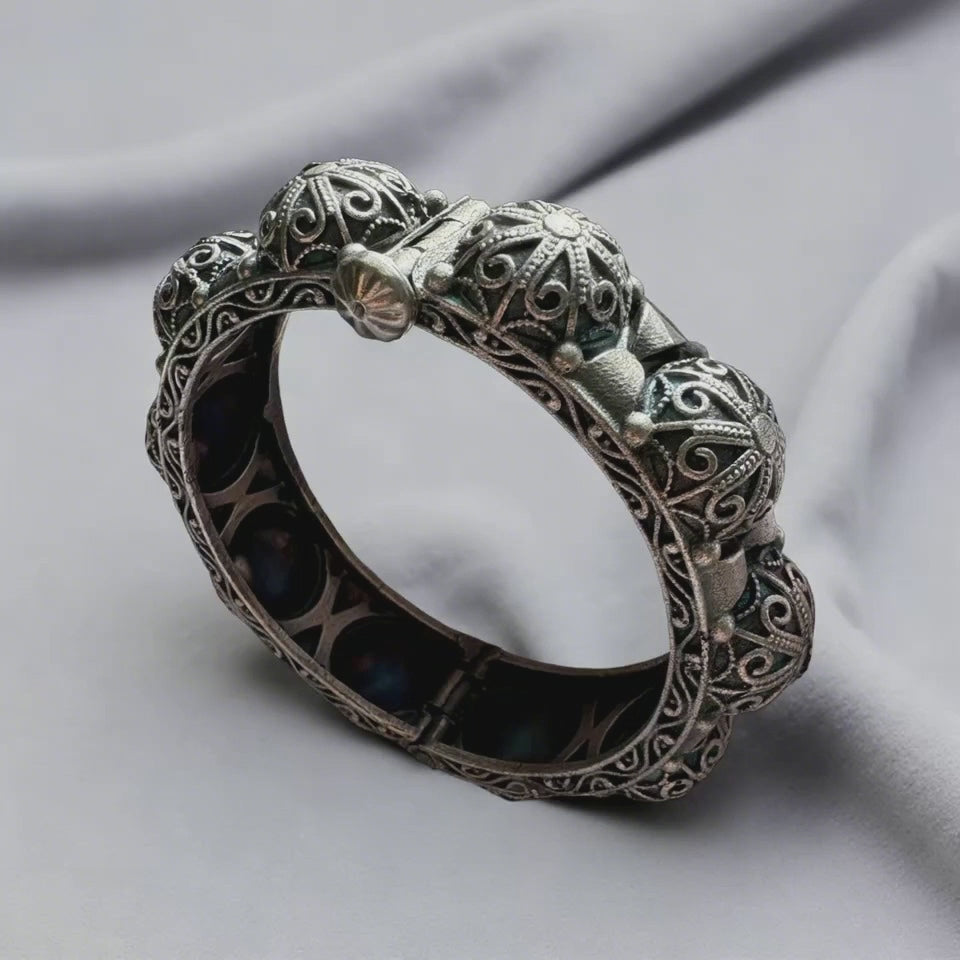 This isn't just jewelry - it's wearable sculpture. The intricate combination of floral patterns and geometric designs creates a piece that celebrates both nature's beauty and artistic precision.